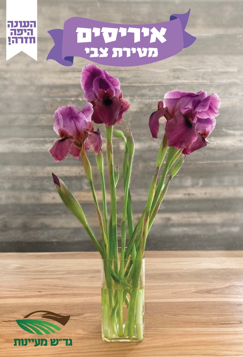 החקלאים של גד"ש מעיינות קוטפים בימים אלה את האיריסים המיוחדים שגדלים בעמק. בחנות במרכז המבקרים אפשר לקנות בשבועות הקרובים זרי איריסים מדהימים ביופיים.